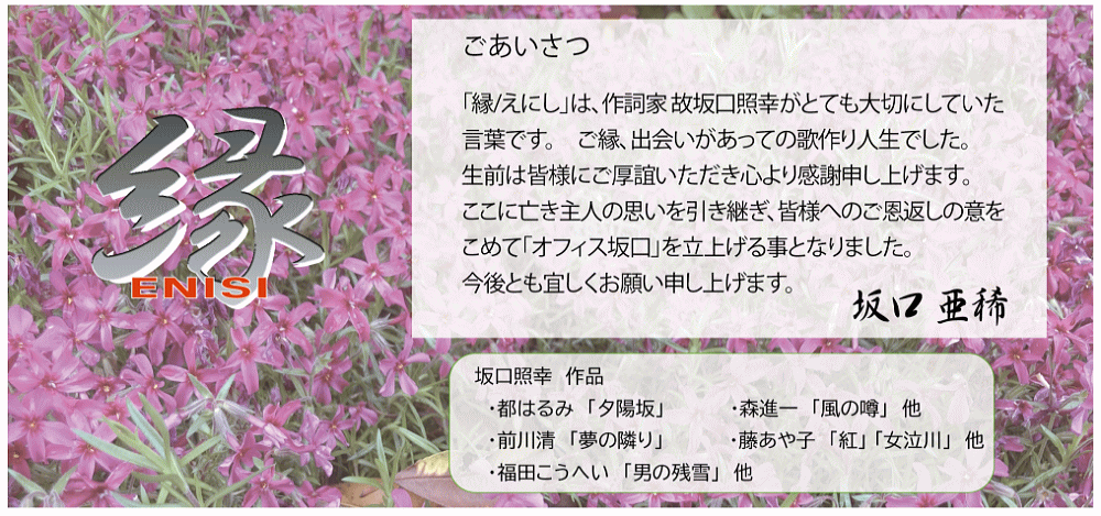 | 2019年 9月 夕月の花(作詞 坂口照幸・作曲 聖川 湧) c/w花供養 |